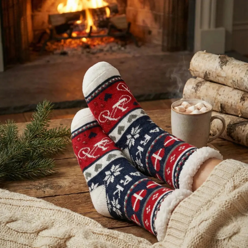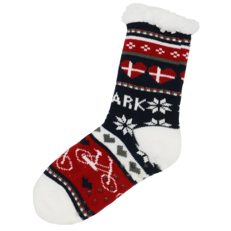 Vores varme hyggesokker har en blød skridsikker sål med silikonedupper under fødderne, som gør at man står godt fast. Forkæl fødderne, med at par tykke hyggesokker når der skal slappes af, eller bare for hyggens skyld.