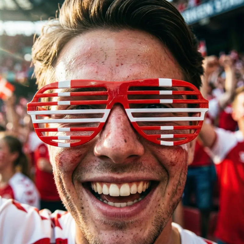 Gør dig klar til at heppe på de danske helte med disse iøjnefaldende Danmark solbriller i rød og hvid. Ideelle til enhver sportsbegivenhed, hvor du vil vise din støtte til de rød-hvide farver og være en del af den imponerende stemning. Solbrillerne har et slankt, shutter-stil design og passer til alle voksne.