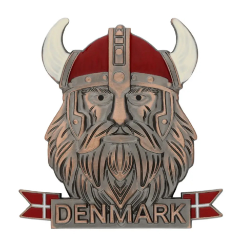 Detaljerne i vikingens skæg og hjelm træder tydeligt frem i det dybe 3D-relief, og med en højde på over 7 cm er det en magnet, der bliver lagt mærke til. Den dyb røde emalje på hjelmen og de to Dannebrogsflag i bunden fuldender designet.